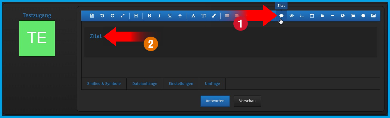 Zitate könnt ihr natürlich auch manuell über den Editor einfügen. Klickt dazu einfach auf "