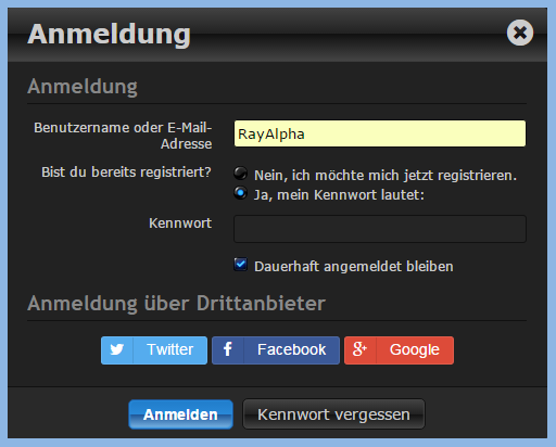 Anmeldung über Drittanbieter / Benutzerkonto mit Drittanbieter verknüpfen
