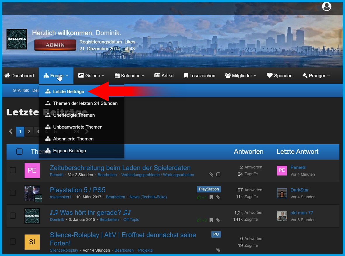 neben "Themen der letzten 24 Stunden", "Unerledigte Themen" usw. wurden nun "Letzte Beiträge" eingeführt.